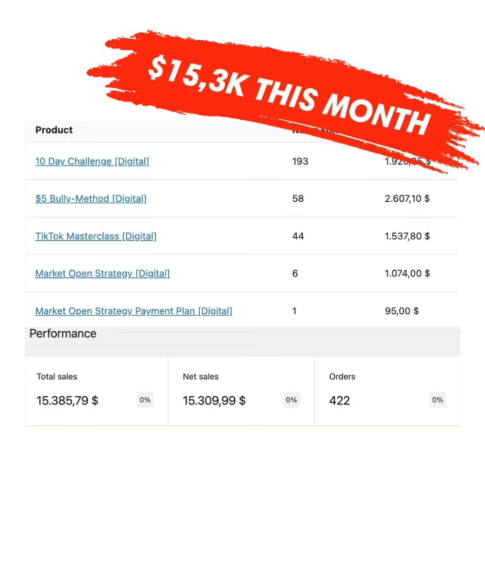 It's simple: You will get everything we talked about… How I setup & sell digital products... How I make my phone go “Ca-Ching” every couple of minutes… How you can copy & paste my entire business for yourself... If you complete the whole challenge and it STILL doesn't work for you… Just message us and we'll help you 1on1 per chat until you make your first 10 sales - You have nothing to loose!